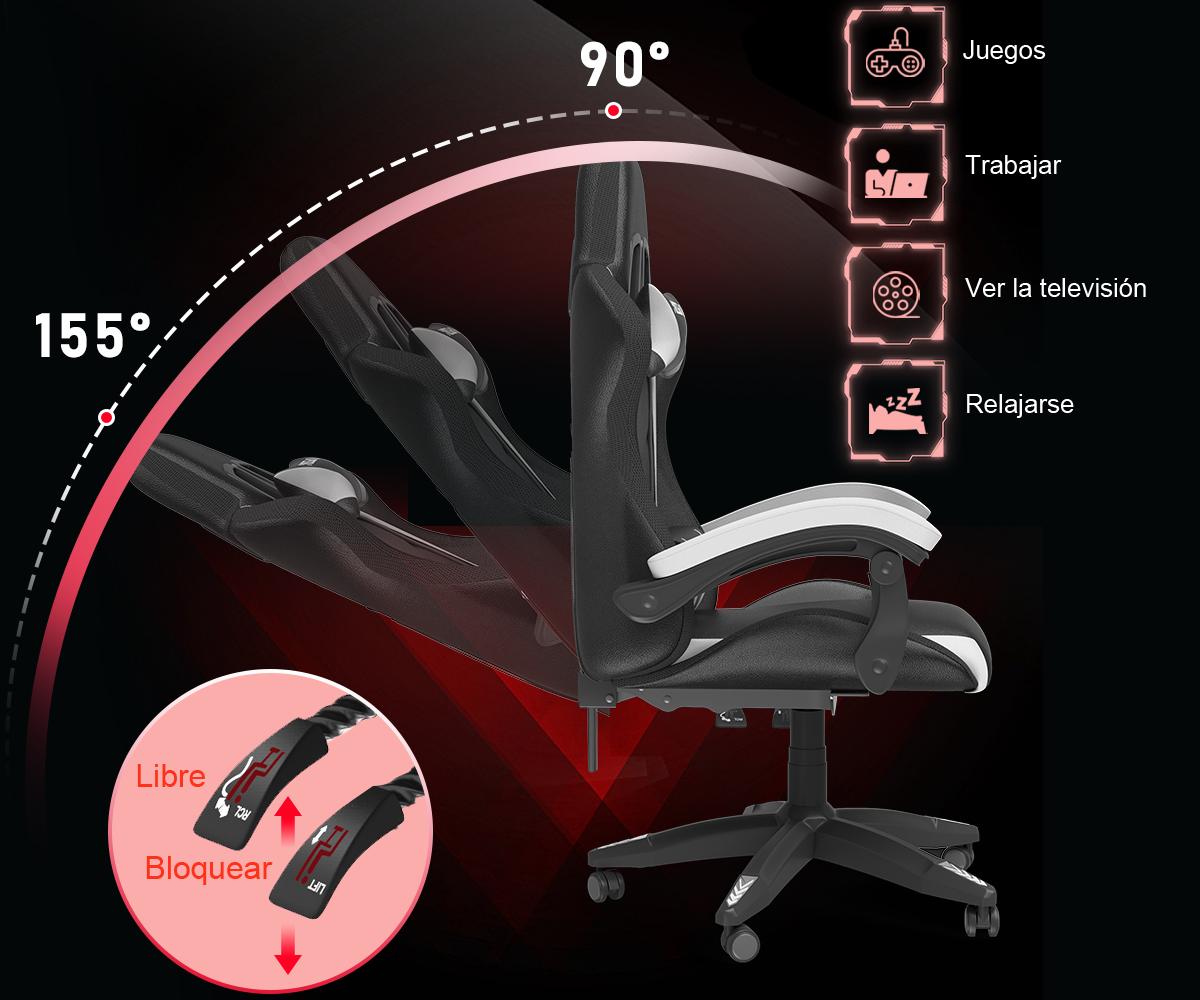 Diseñado para brindar comodidad ergonómica, con almohada cervical y cojín lumbar extraíbles, asiento ajustable en altura y acolchado de espuma suave. El respaldo reclinable, ajustable de 90° a 155°, le brinda comodidad en todo momento para trabajar, jugar o relajarse.