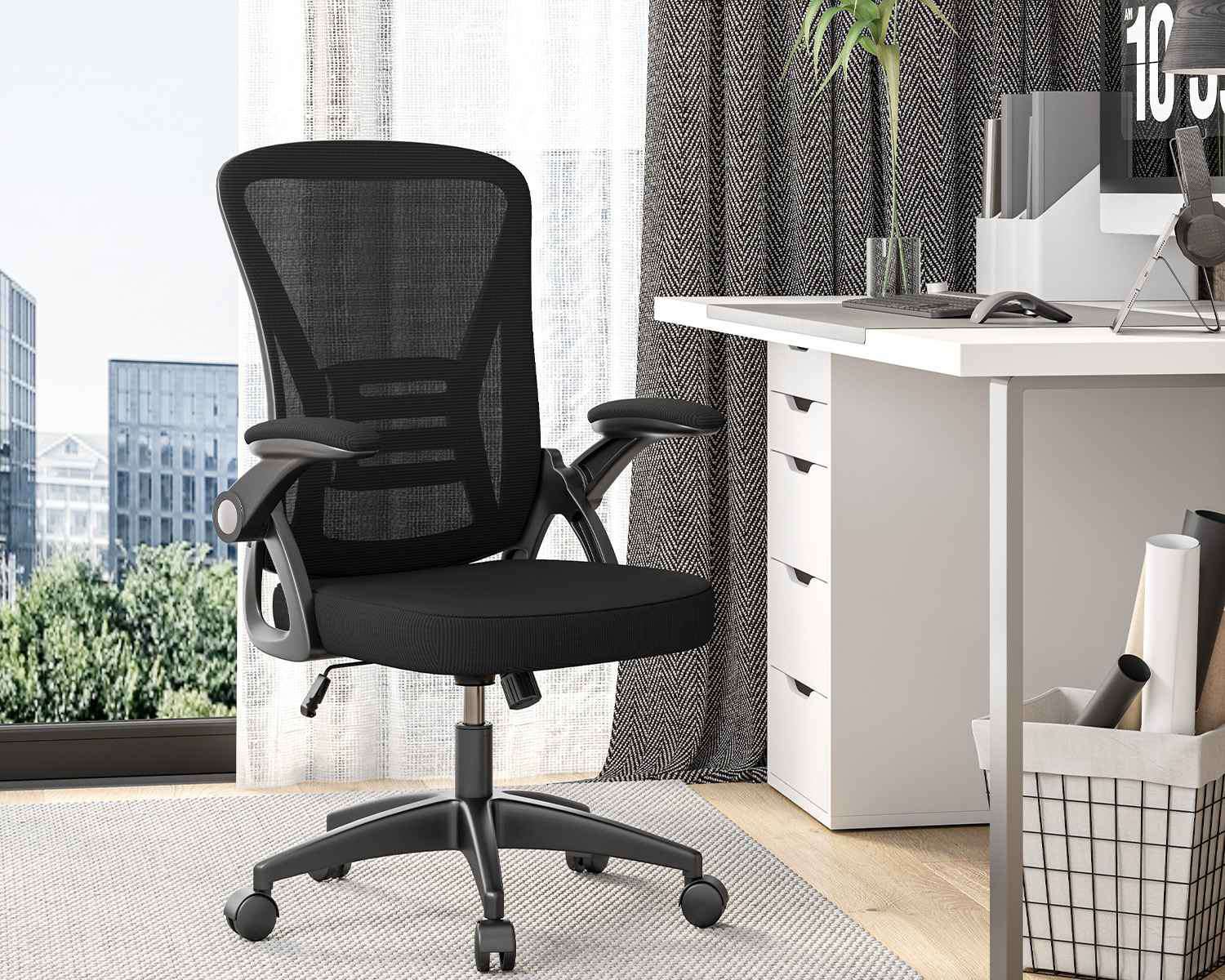 Silla de Oficina Silla de Escritorio Ergonómica con Reposabrazos Abatible 90°, Silla de Escritorio de Oficina Regulable en Altura